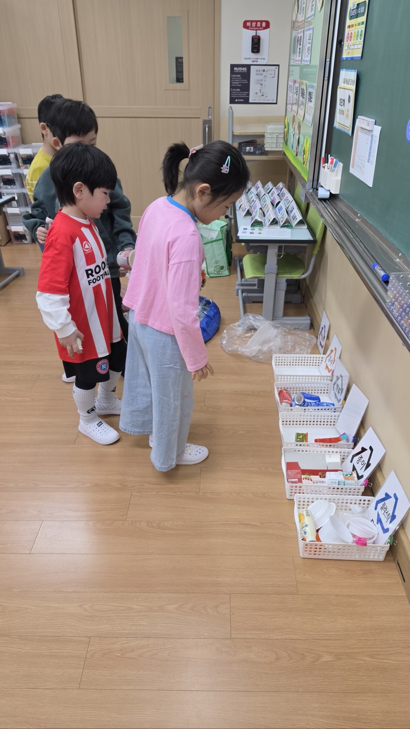뒤에서 "그거 종이야~", "플라스틱이야~" 분리 배출 코치를 해주는 친구도 있었네요.