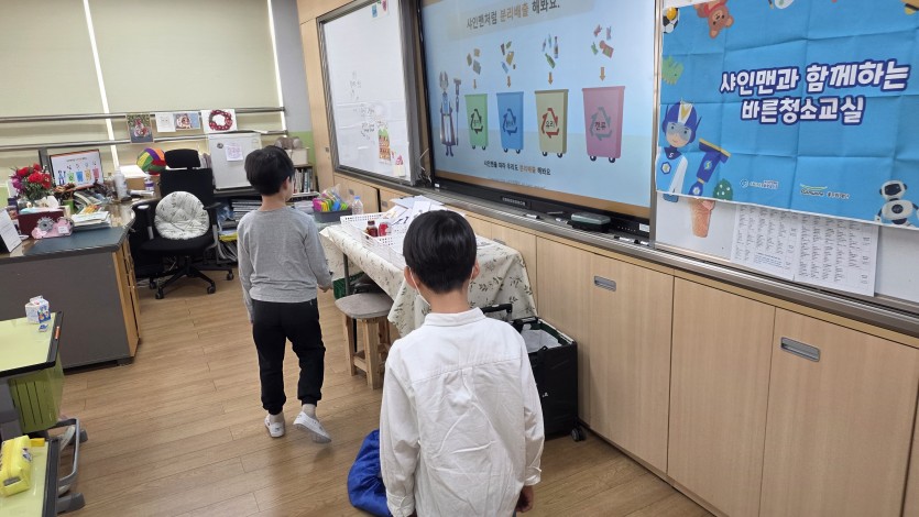 미래초 학생들과 즐거운 분리배출시간을 보냈습니다. 상품 뒤에 있는 분리배출기호를 찾아보는 활동도 즐겁게 진행되었습니다. 사물함과 자신의 책상서랍을 정리, 정돈, 쓸고닦기 하는 시간도 잘 참여해주었습니다.