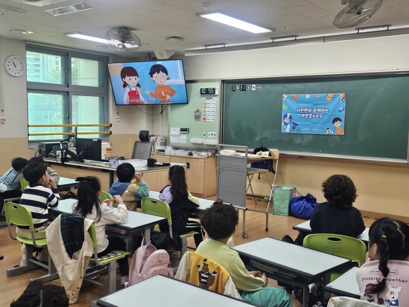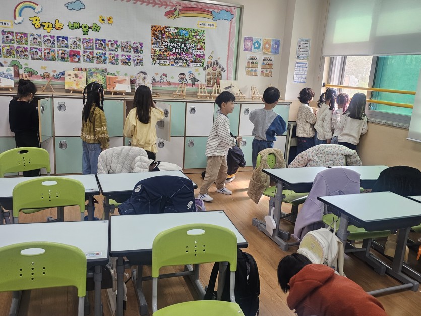 아이들은 호기심 어린 눈으로 칠판에 붙여진 ‘바른 청소 교실’이라는 글자를 한 글자씩 읽어 내려갔습니다.