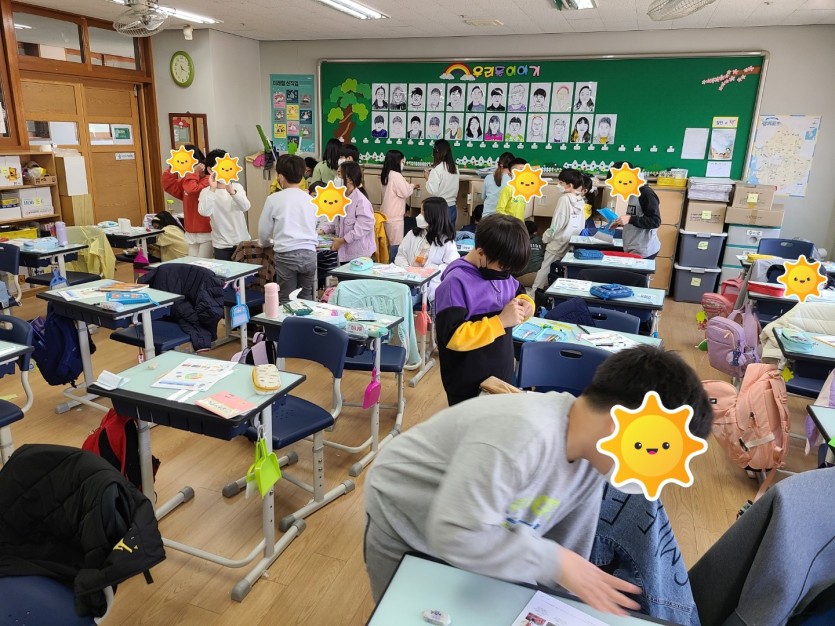 4-4반 교실에 들어가니, 아이들이 어제 담임선생님이 '본인의 방청소 체험' 미션을 주셔서 열심히 방청소하고 왔다고 말들을 합니다. 방청소가 너무 힘들었다 하기 싫었다 오랜만에 청소를 하니까 정리할 물건들이 너무나도 많았다 등등 고생담을 말합니다. 환기의 중요성을 알려주고 미세먼지가 있는 날에도 환기를 짧게 해야한다니까 몰랐다고 앞으로 환기를 잘 하겠다 말합니다. 정리 정돈에 대해서 설명하고 우리 이제부터 사물함과 서랍속 청소 체험해볼까 말하니 정성들여서 열심히 청소합니다. 사물함에서 서랍속에서 쓰레기들이 많이 나오고 먼지를 닦아내더니, 청소하니까 기분이 좋다고 아이들이 청소가 어렵지 않아서 좋다고 내일부터 매일 청소해야겠다고 너무나 즐거운 수업이었다고 말들을 해주어서 너무나 행복한 수업이었습니다.