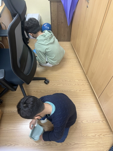 우리 교실 속 먼지들을 찾아 열심히 쓸고닦기 하는 친구들 덕분에 교실 곳곳이 반짝반짝 해지는 모습을 볼 수 있었어요.