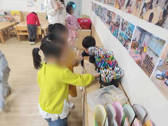 하지만 분리배출이 유치부 친구들에게 그렇게 쉬운 일만은 아니지요. 아직 플라스틱과 캔류 등의 재질을 구분하기 어려워하는