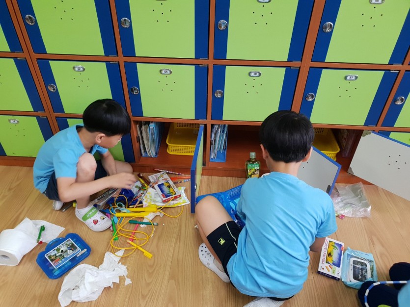 사물함 속과 책상서랍 속 물건들을 꺼내어 정리하고 정돈하는 시간을 갖았는데 무더운 날씨에도 하나같이 열심히 청소하는 모습들이었어요..